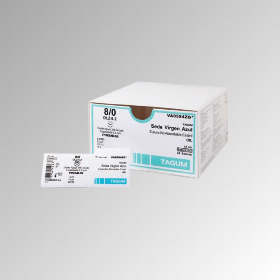 La seda virgen es una sutura natural no absorbible, compuesta de una proteína orgánica llamada fibroína proveniente de la especie domesticada del gusano de seda bombix mori. Estos filamentos son teñidos con colorantes inocuos.