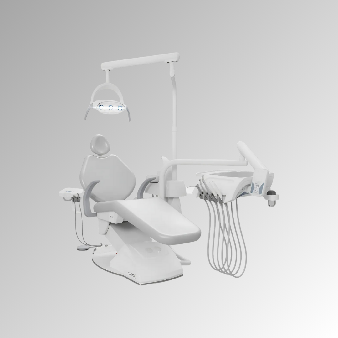 Presentación: unidad x 1 | Uso: soporte y posicionamiento del paciente durante tratamientos odontológicos; compatible con turbinas, micromotor y accesorios | Características: regulable, cómodo y ergonómico | Material: estructura metálica y tapizado acolchado.