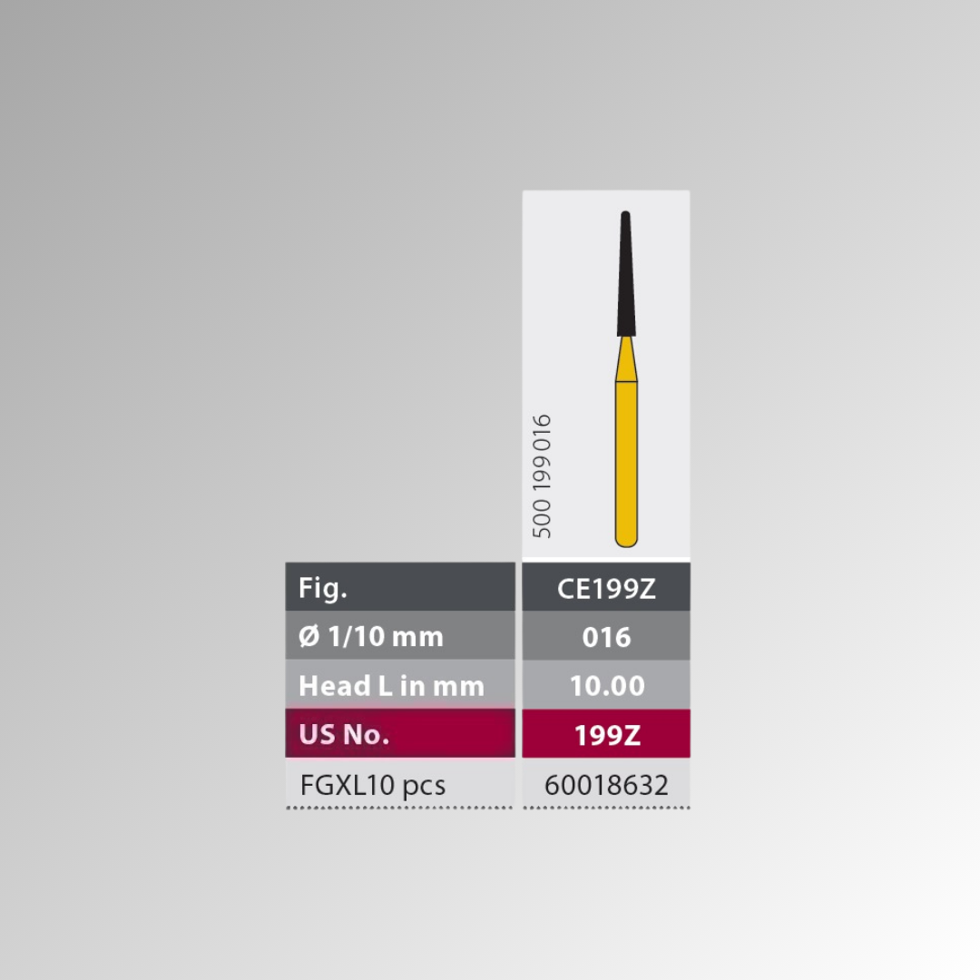 Fresa de carburo FG para hueso. Forma: TRONCOCÓNICA PUNTA CHATA FG Zekria 199 Presentación: Empaque individual.