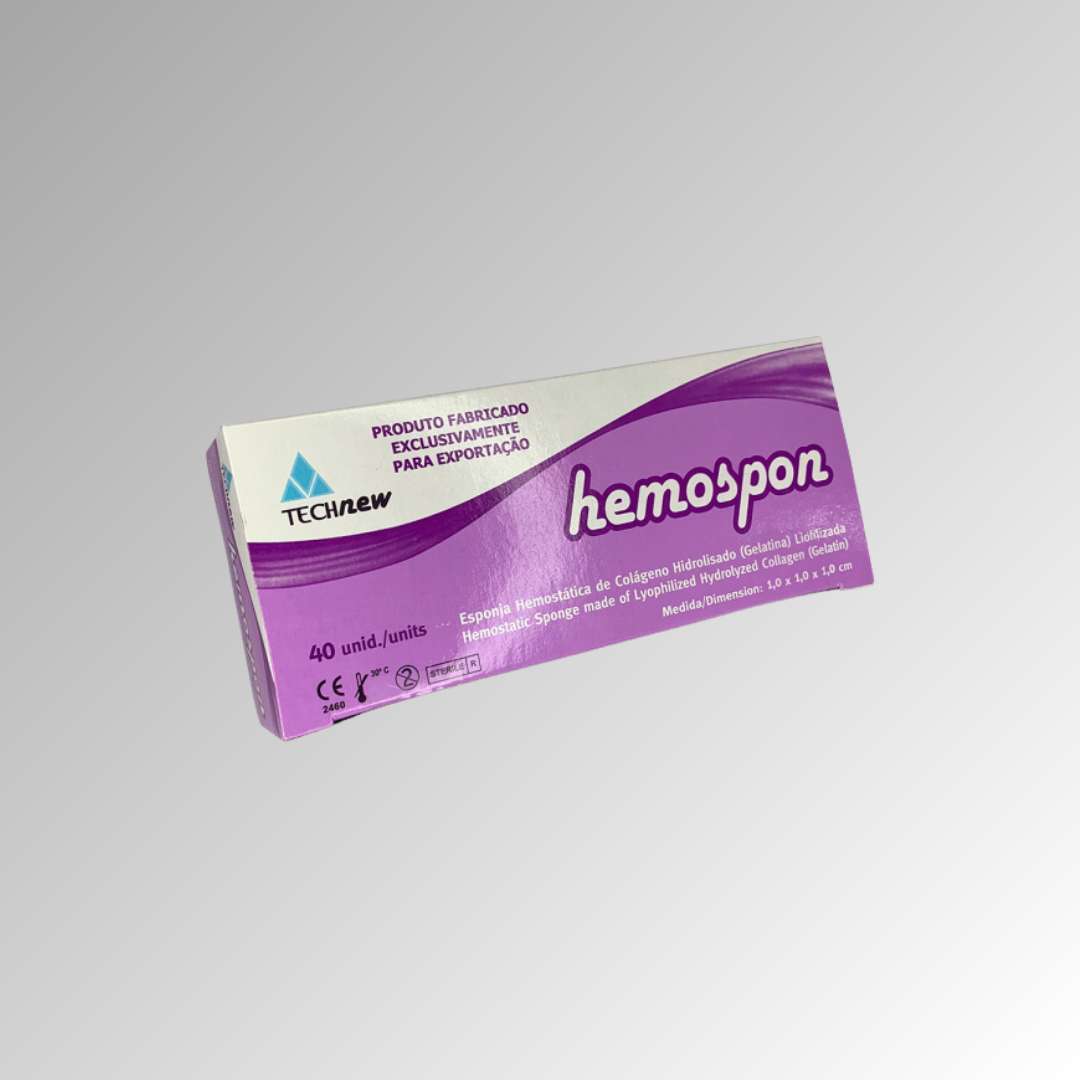 Es una esponja de gelatina liofilizada con acción cicatrizante hemostática y es completamente absorbible por el organismo. HEMOSPON® es atóxica y apirogénica. Se presenta lista para su uso. PRESENTACION: Caja x 40 unidades.