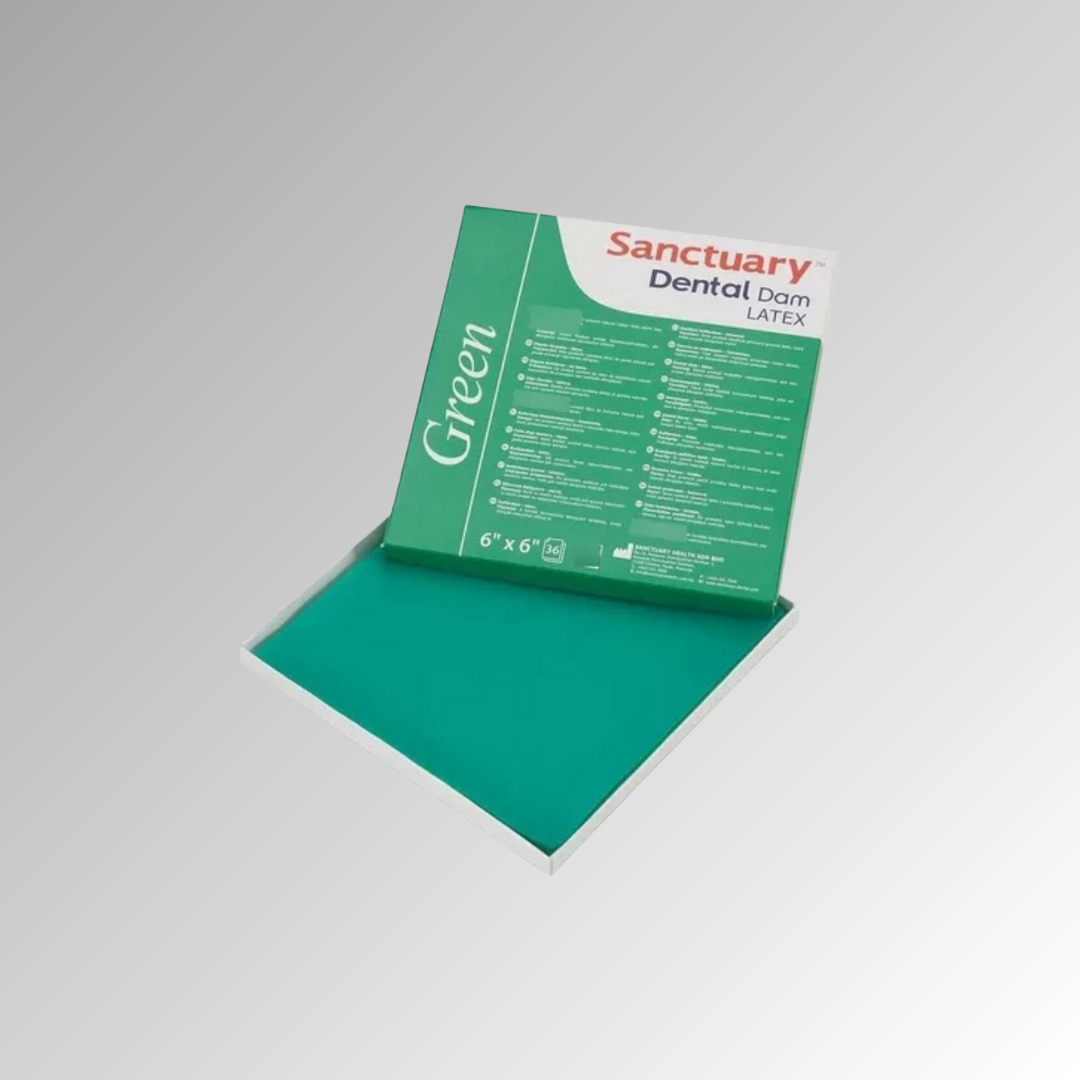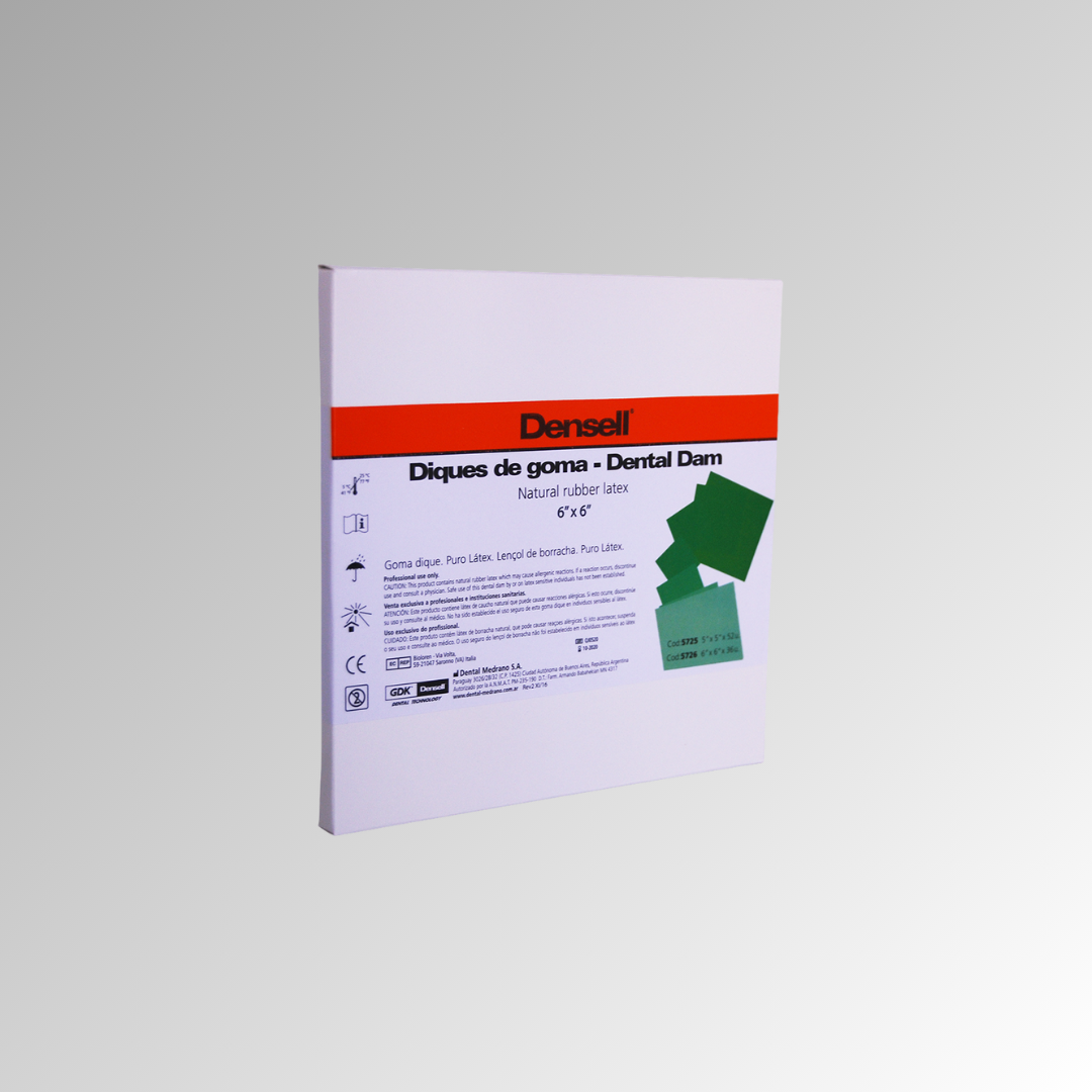 Es el primer dique dental de látex libre de polvo y bajo en proteínas, lo que lo hace la mejor elección para uso profesional. Color verde Aroma menta Espesor 0.22 mm. PRESENTACIÓN Caja x 36 láminas de 6×6