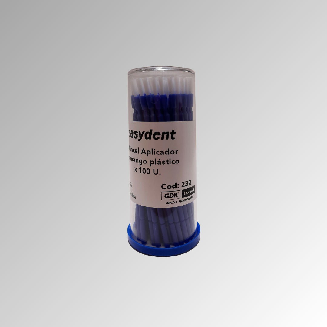 Presentación: paquete x 100 unidades | Uso: aplicación precisa de adhesivos y líquidos en odontología | Características: puntas finas y resistentes | Material: varilla de plástico con fibra sintética.