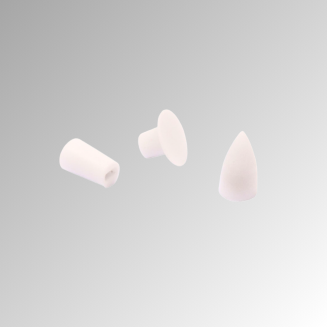 PUNTAS DE SILICONA PARA EL PULIDO Y AСАВАDO DE RESINAS COMPUESTAS Ofrece dos funciones en un sólo producto de acuerdo a la fuerza aplicada en su uso; aplicado con mayor fuerza permite retocar la anatomía desgastando el material restaurador, con menor fuerza proporciona el pulido del material, dejando la superficie lisa, uniforme y brillante. Presentación: 24 piezas surtidas + mandril.